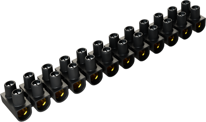 Regleta de conexión. 12 bornes para cable de hasta 16 mm². 80A. 450V.Color negro. Par de apriete de 1,2 Nm. Paquete de 10 uds.
